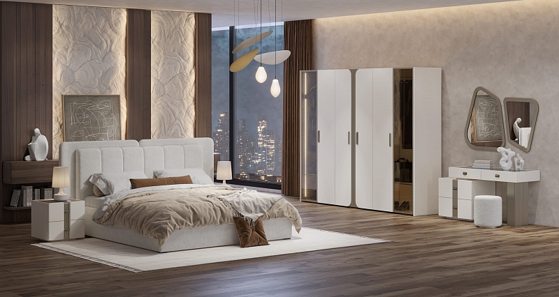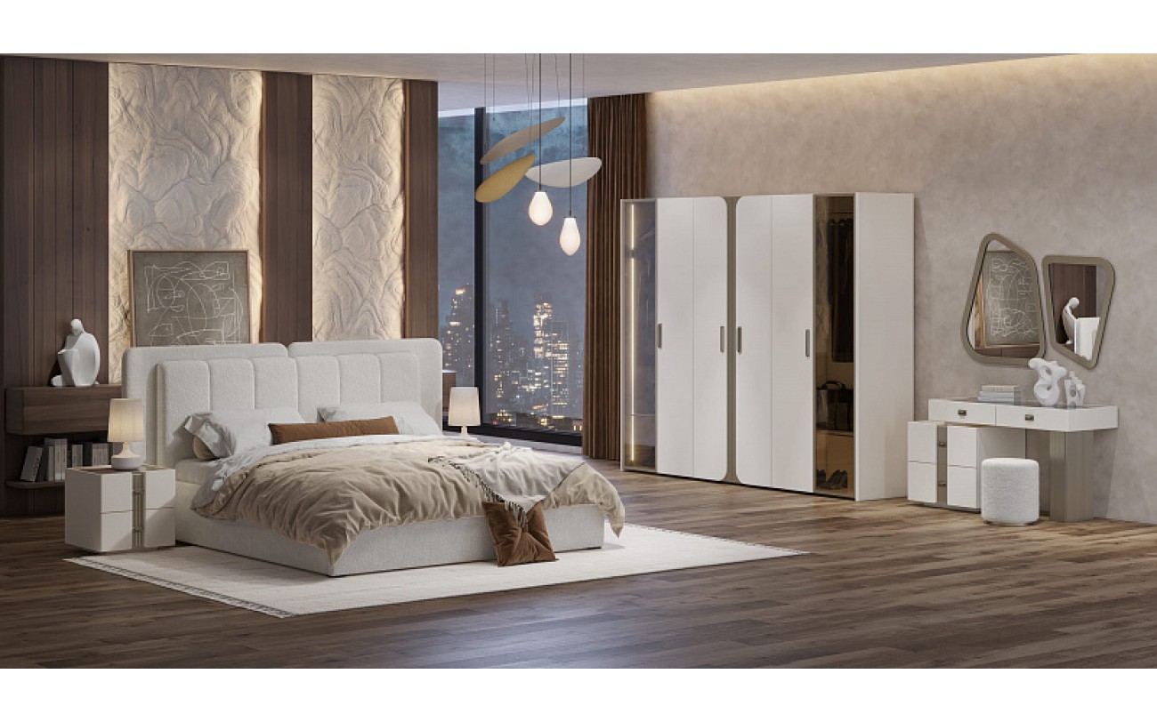 Спальня "Леонардо" (Кровать 1,8 с малым и большим изголовьем; 2 тумбы; Туалетный стол с зеркалом и пуфом; Шкаф 6 дверный)