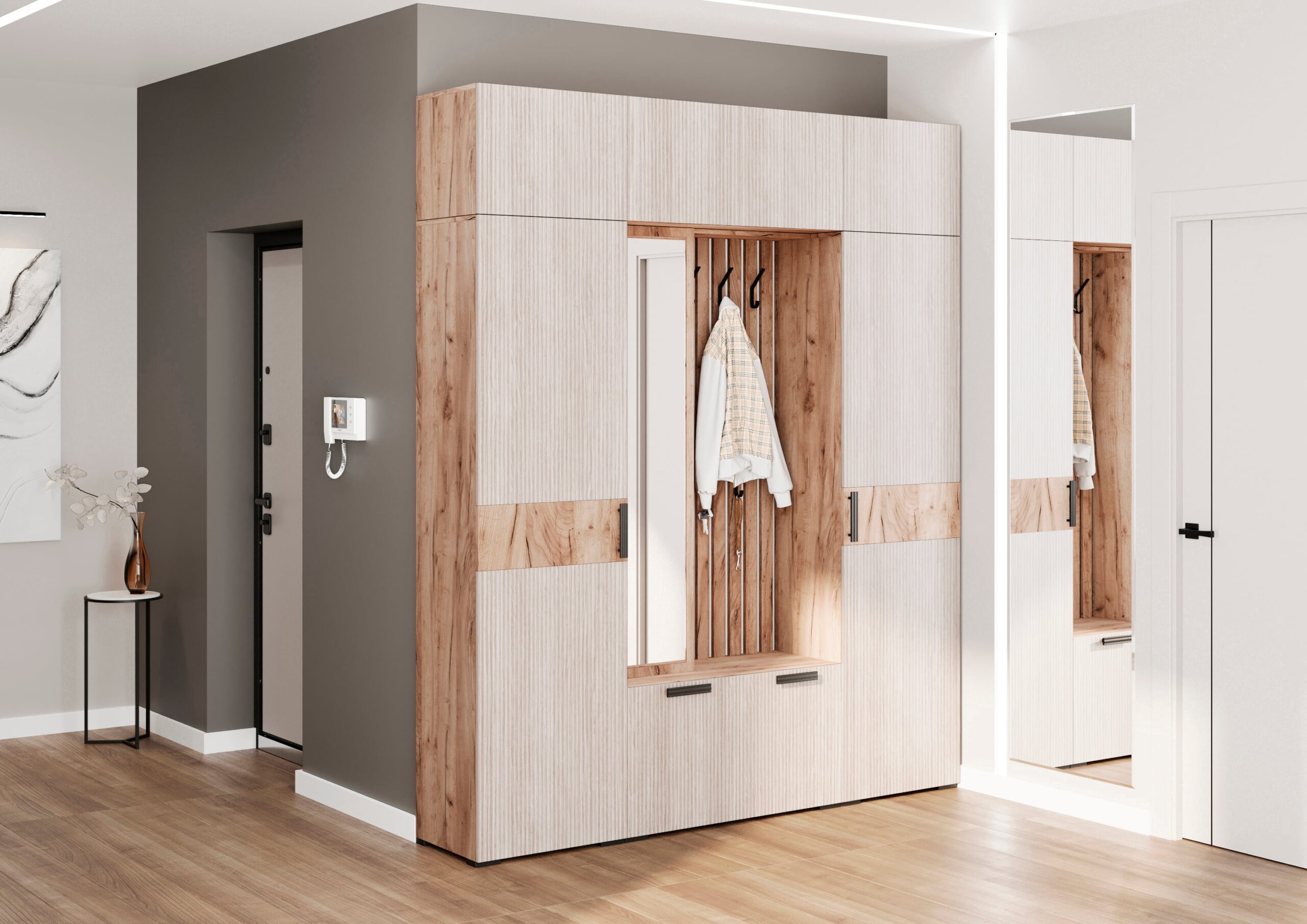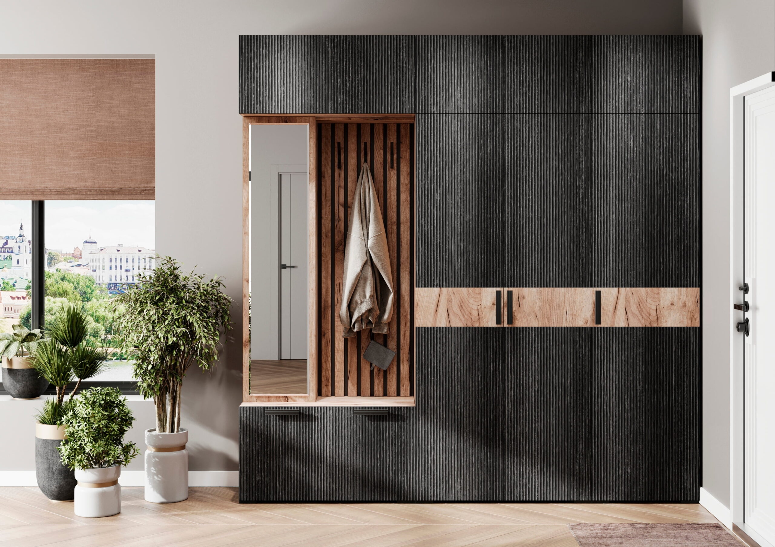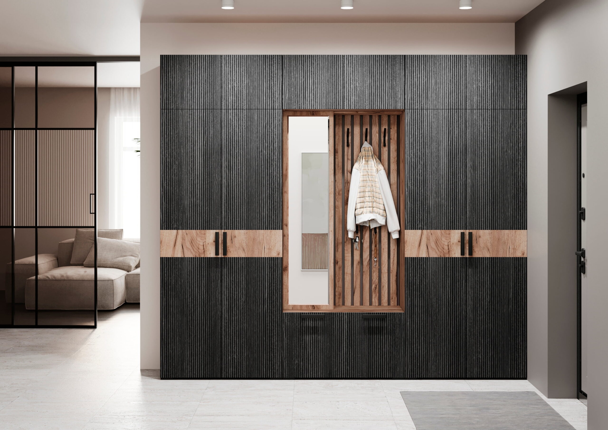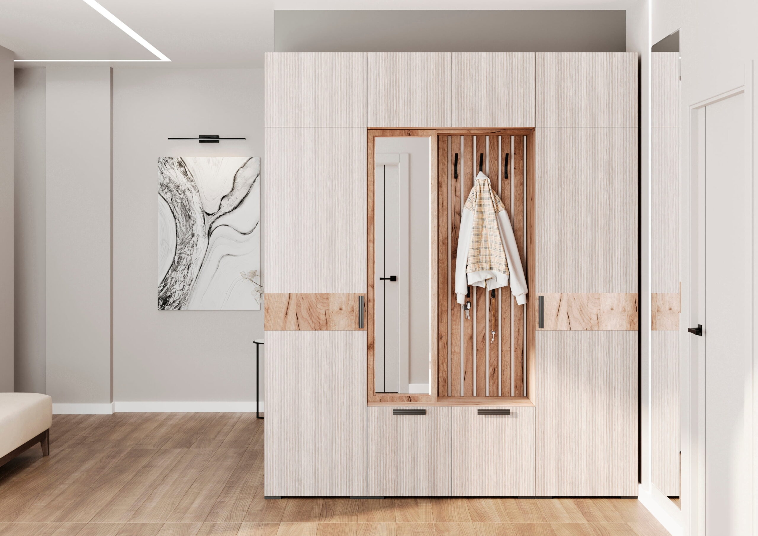петли с доводчиками на шкафах, толкатели фасадов на антресоляхФасад