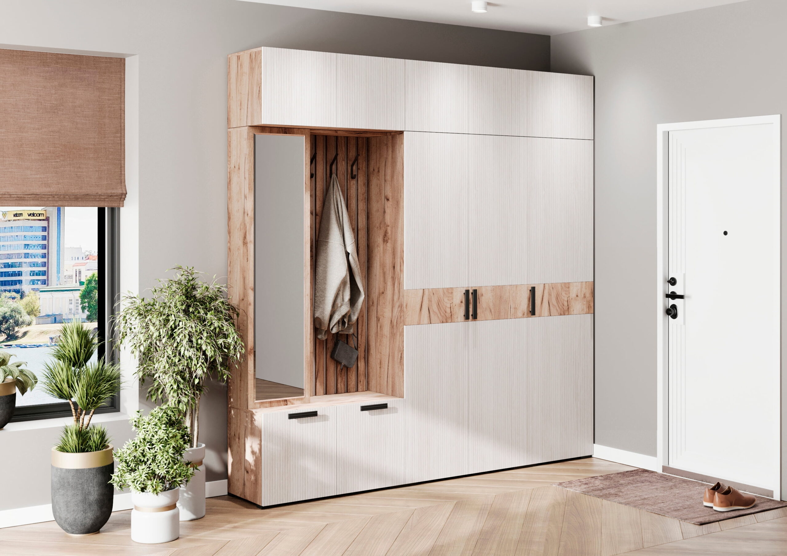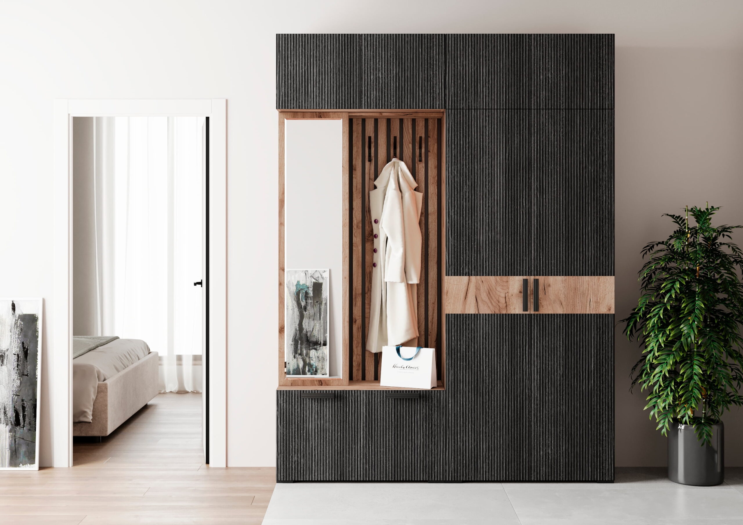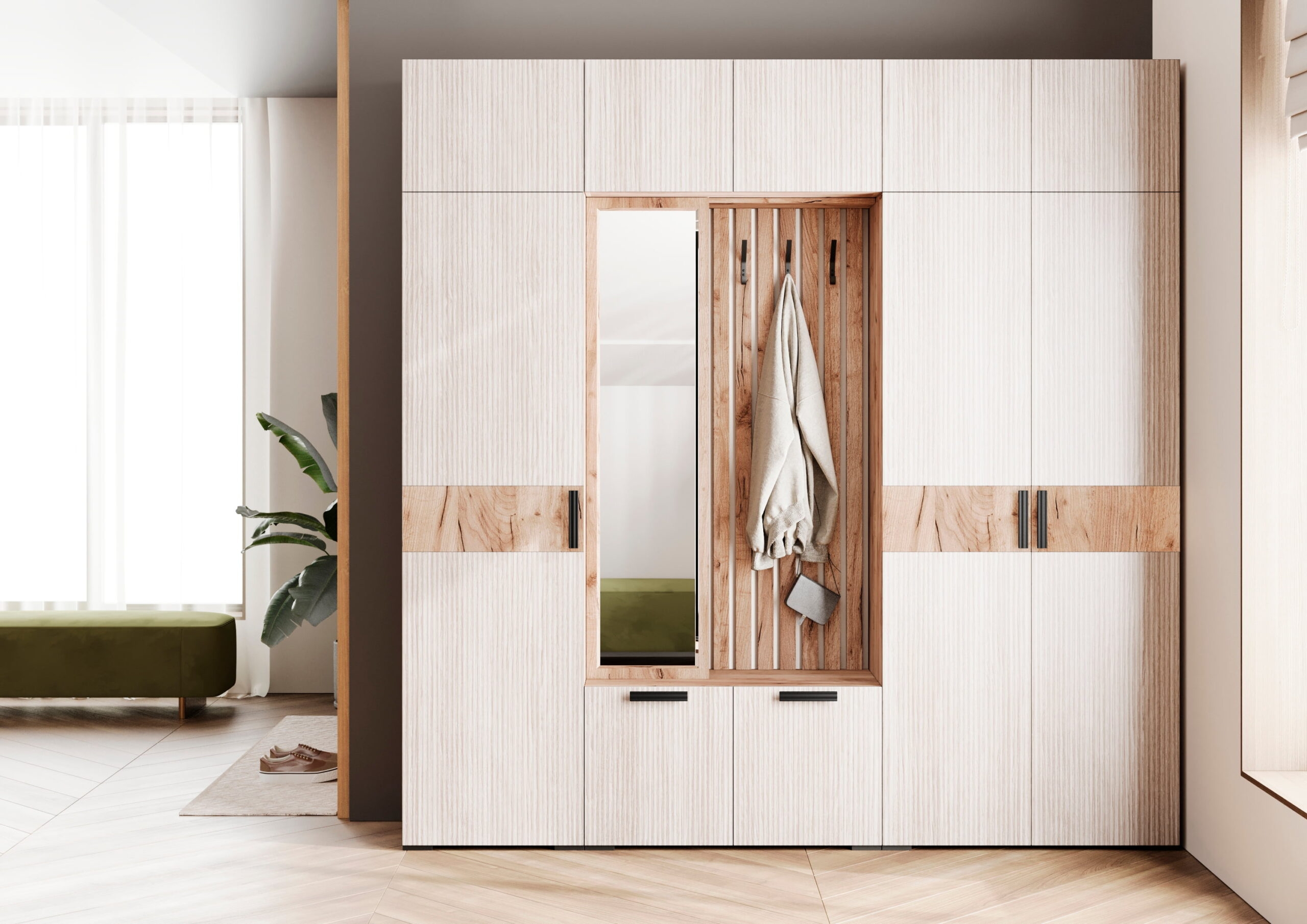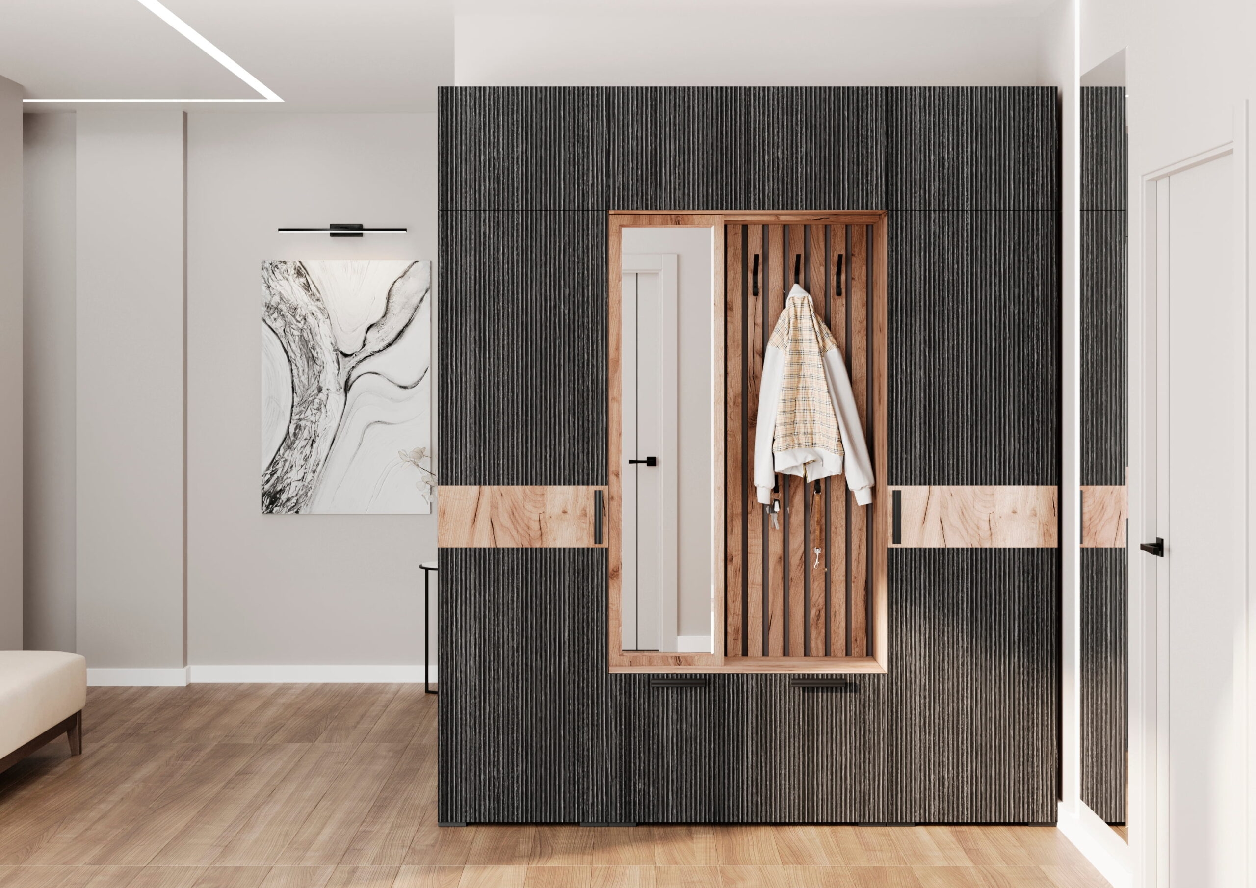петли с доводчиками на шкафах, толкатели фасадов на антресоляхФасад