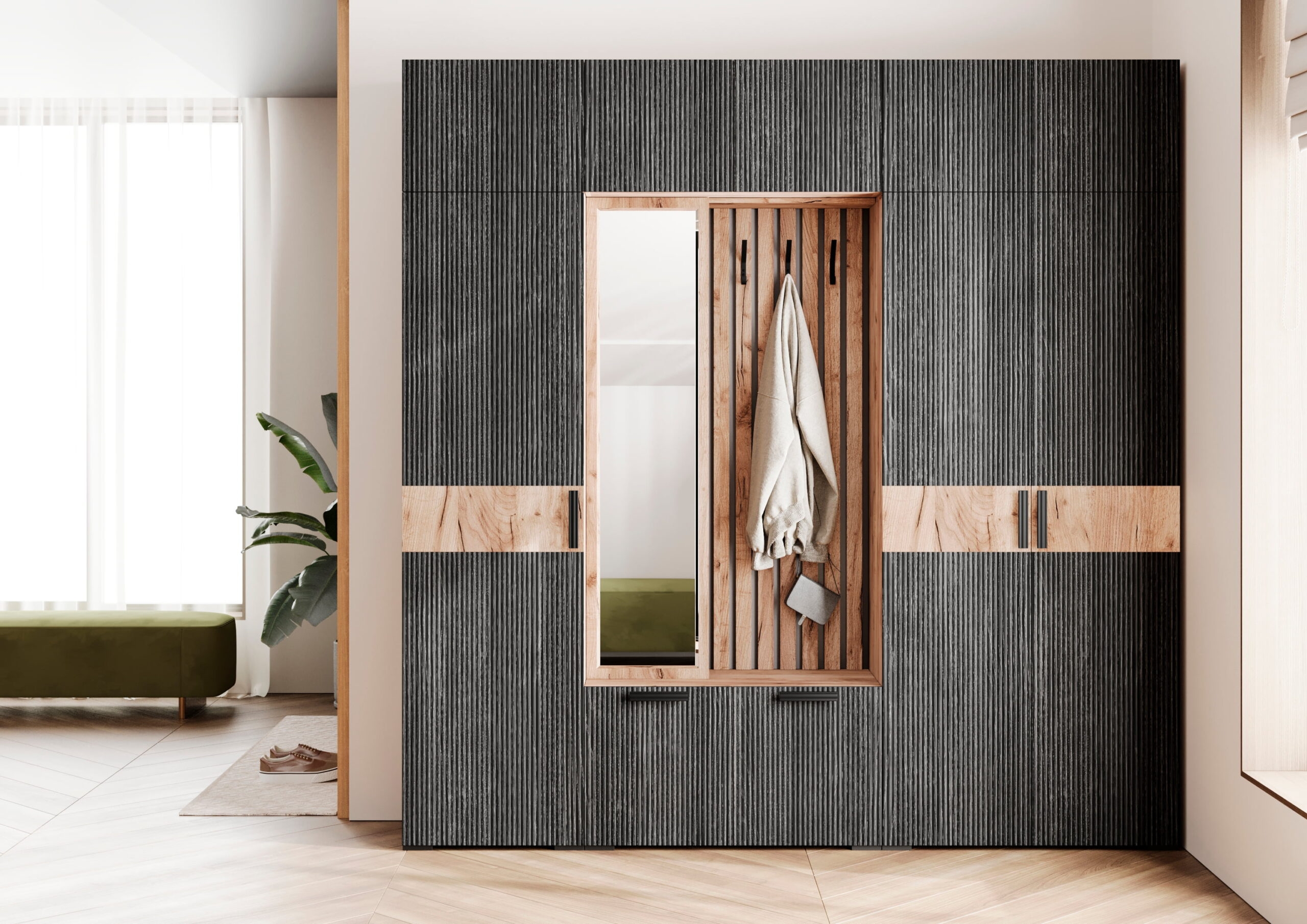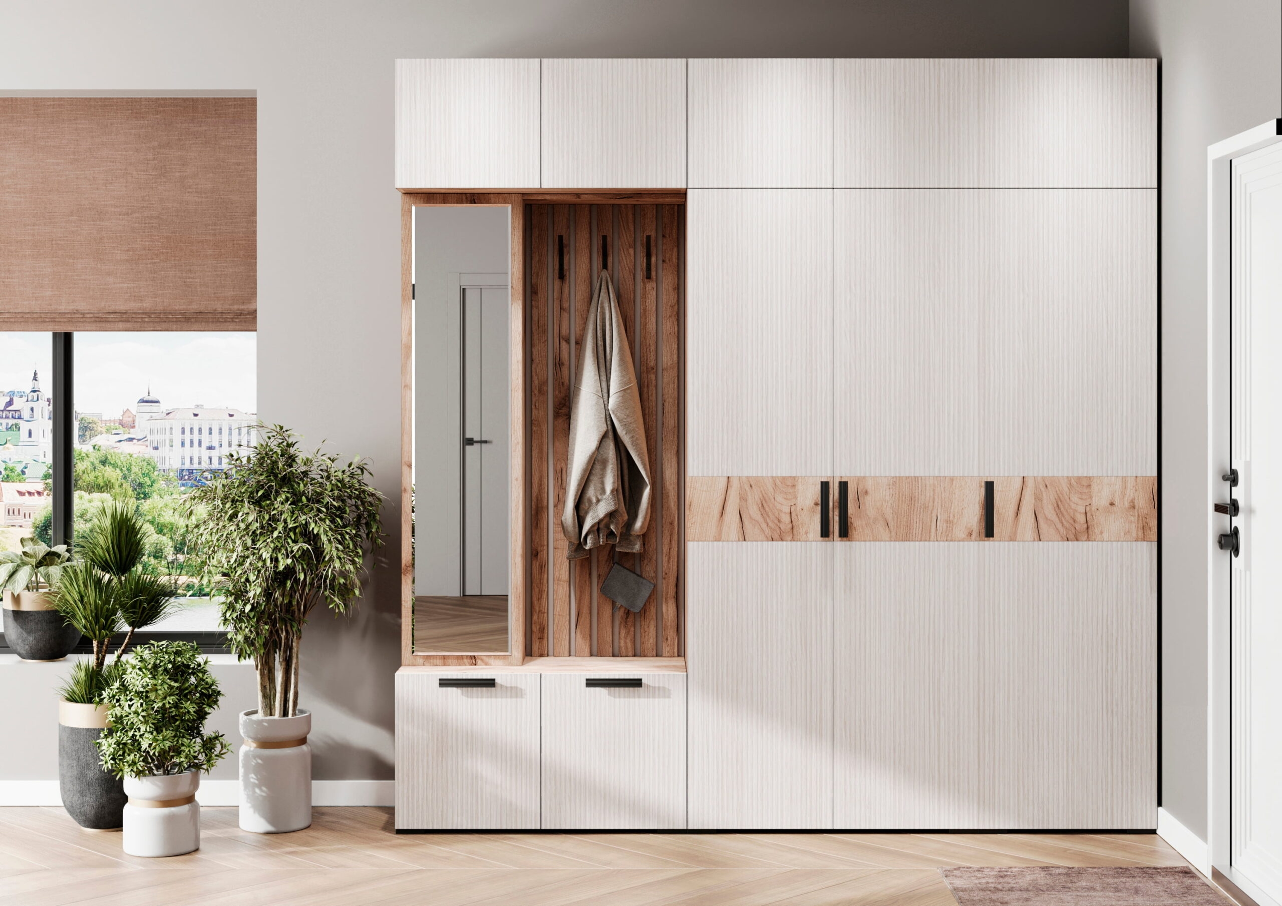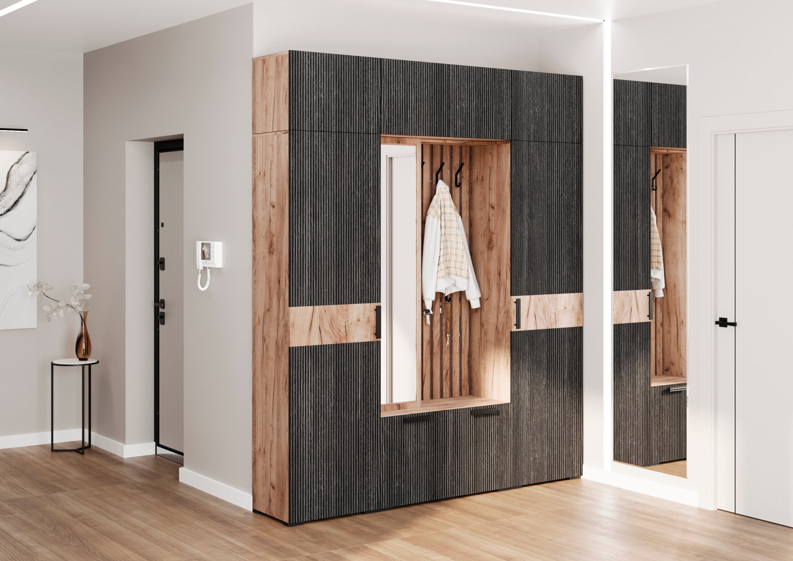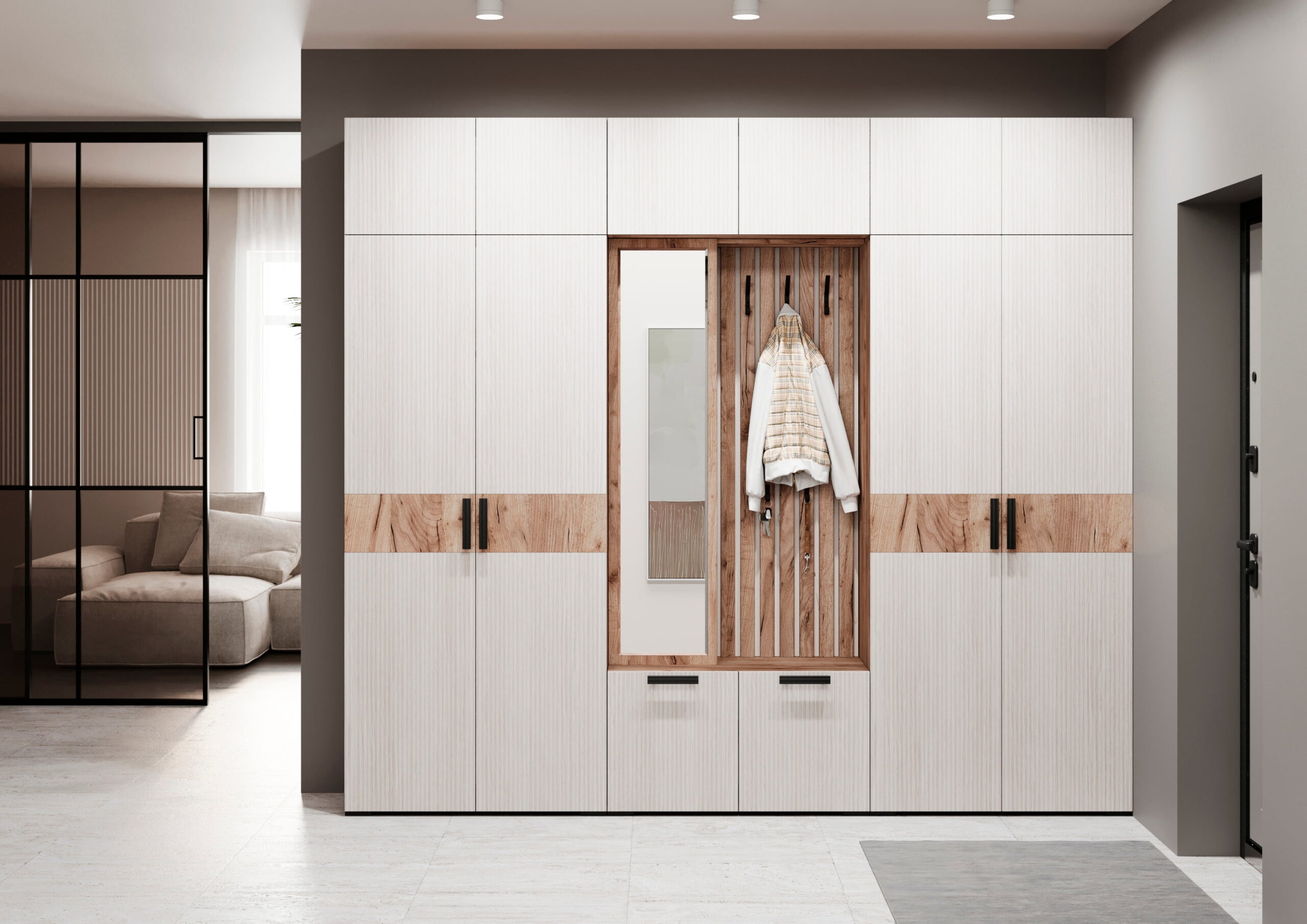 петли с доводчиками на шкафах, толкатели фасадов на антресоляхФасад