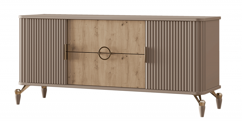 ТВ-тумба "Мадрид" идеально подходит для размещения телевизора и других мультимедийных устройств. Она обладает стильным дизайном и удобными отделениями для хранения. Выдвижные ящики и петли с доводчиками обеспечивают плавное и бесшумное закрывание фасадов.